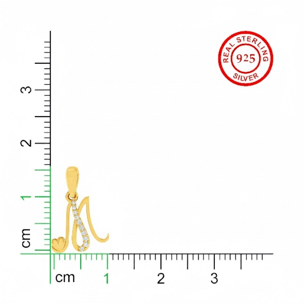 Gold Plated BIS Hallmarked Pure 925 Sterling Silver "Letter M" Pendant | Rhodium and Rose Gold Plating Options | With or Without Chain Option