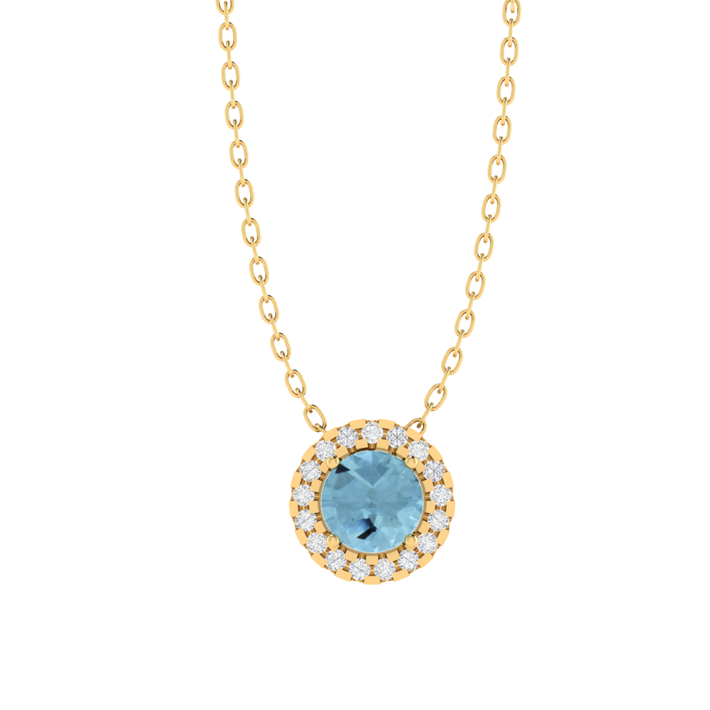 Gold Plated Sterling Silver Round Cut Aquamarine Gemstone Pendant with 18Inch Chain